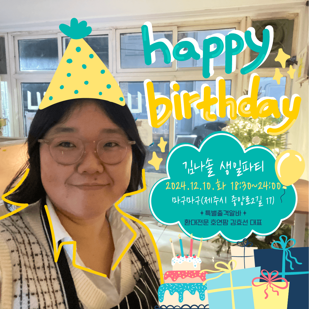 나솔님의 생일축하파티 참석권 : 제주스퀘어 (2024.12.10. 18:30, 21:00)