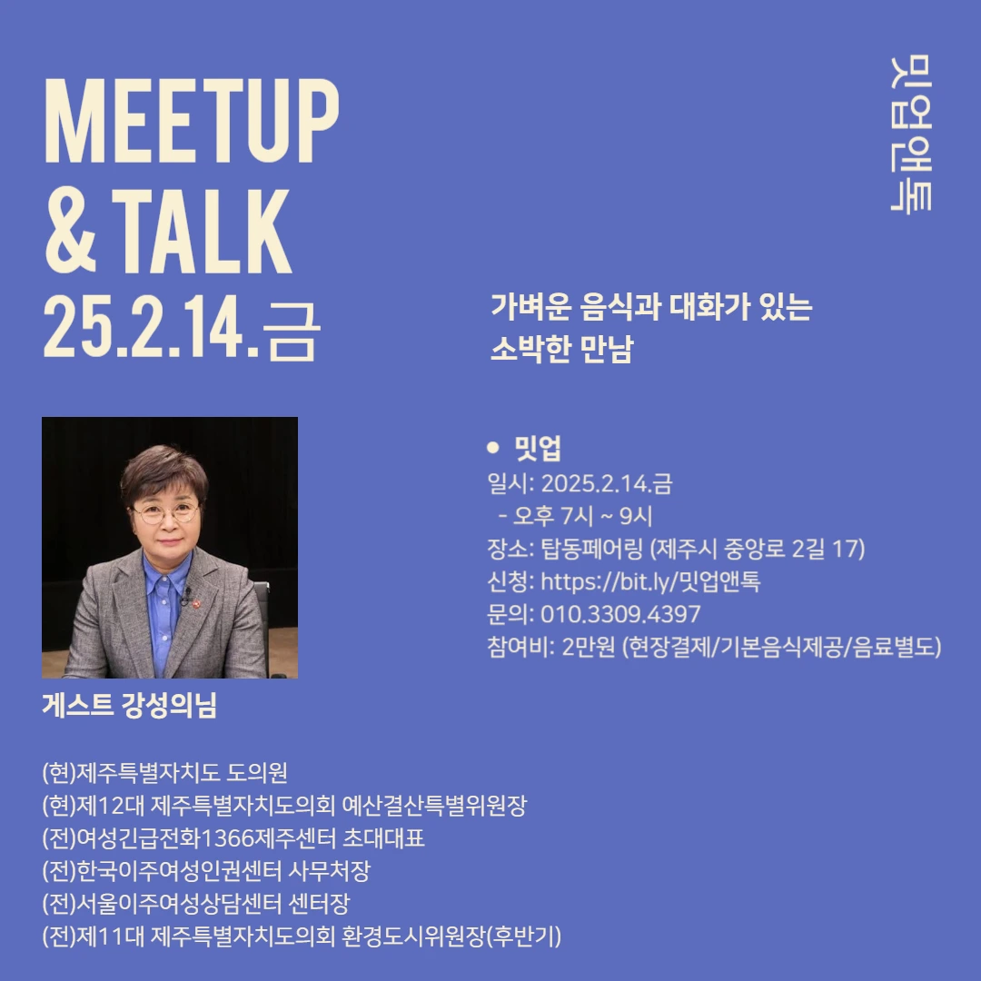 [밋업앤톡] 음식과 대화가 있는 소박한 만남 (게스트: 강성의 의원님, 2.14.금)