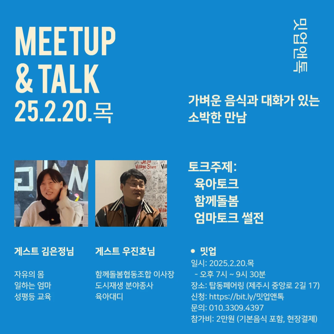 2월 20일 목요일 저녁에는 대화의 주제를 "육아토크, 함께돌봄, 엄마토크 썰전"으로 잡아 보았습니다.