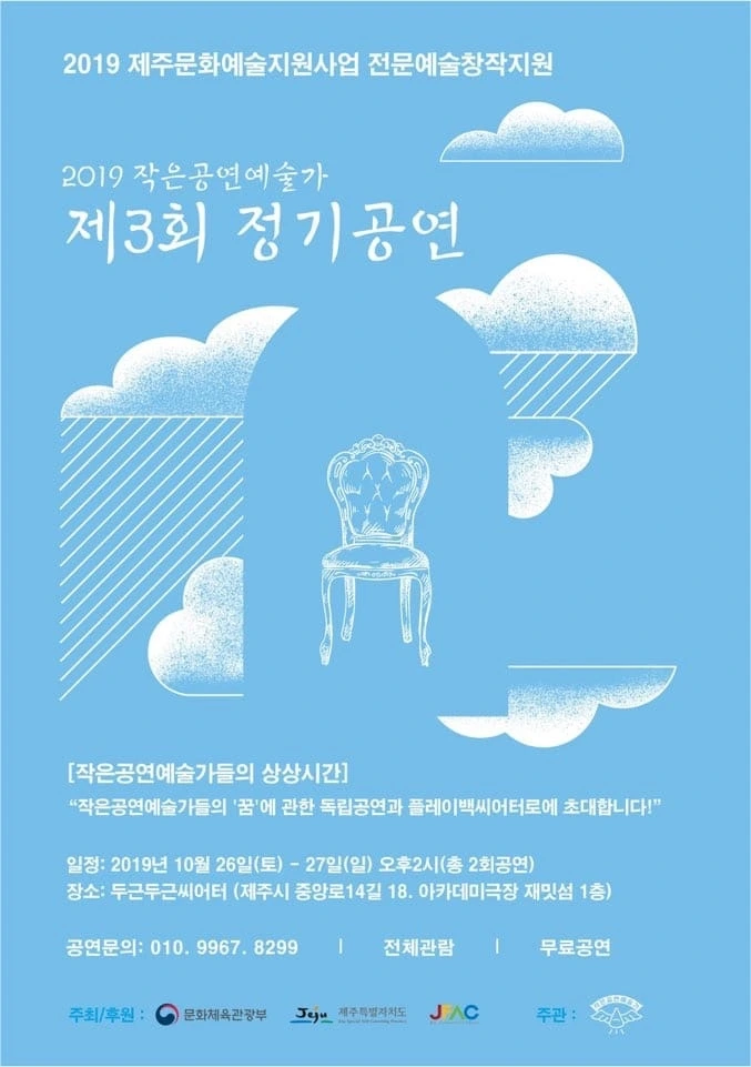 나는 2018년 12월 공연을 끝으로 그 이후에는 제주스퀘어에 집중하기 위하여 공연을 하지는 않고 있다. 다만 응원하는 마음으로 지켜보거나 가끔 회의에 꼽사리 끼곤 한다. 떠올려보면 2018년 12월의 공연은 참 풍성했다. 게스트들이 많이 참여했고, 그중에는 전문 연극인분들도 있었고, 댄서도 있었고, 연극과는 무관하지만 뭔가 재미있는 일이라면 어떤 식으로든 함께 하고 싶어했던 지인도 있었다. 그림자극을 하고 싶은데 엄두가 안나지만 공연일이 정해지자 어떻게든 연습해와서 많은 이를 놀라고 즐겁게 해주었던 분도 있었고, 만삭인 배에 그림을 그리며 이야기를 들려주며 관객에게 뭉클함을 선사했던 멤버도 있었다. 만삭인 상태로 연기를 하다가 바닥을 기어야 하는 장면에서, 관객들이 임산부가 힘들지 않을까 걱정하며 지켜보게 했던 멤버도 있었다.