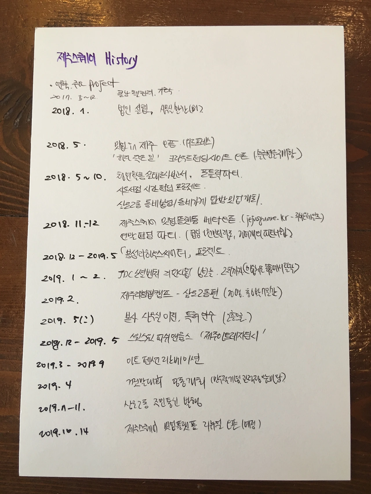 서비스 브로슈어를 구상하며, 회사의 연혁도 정리해본다