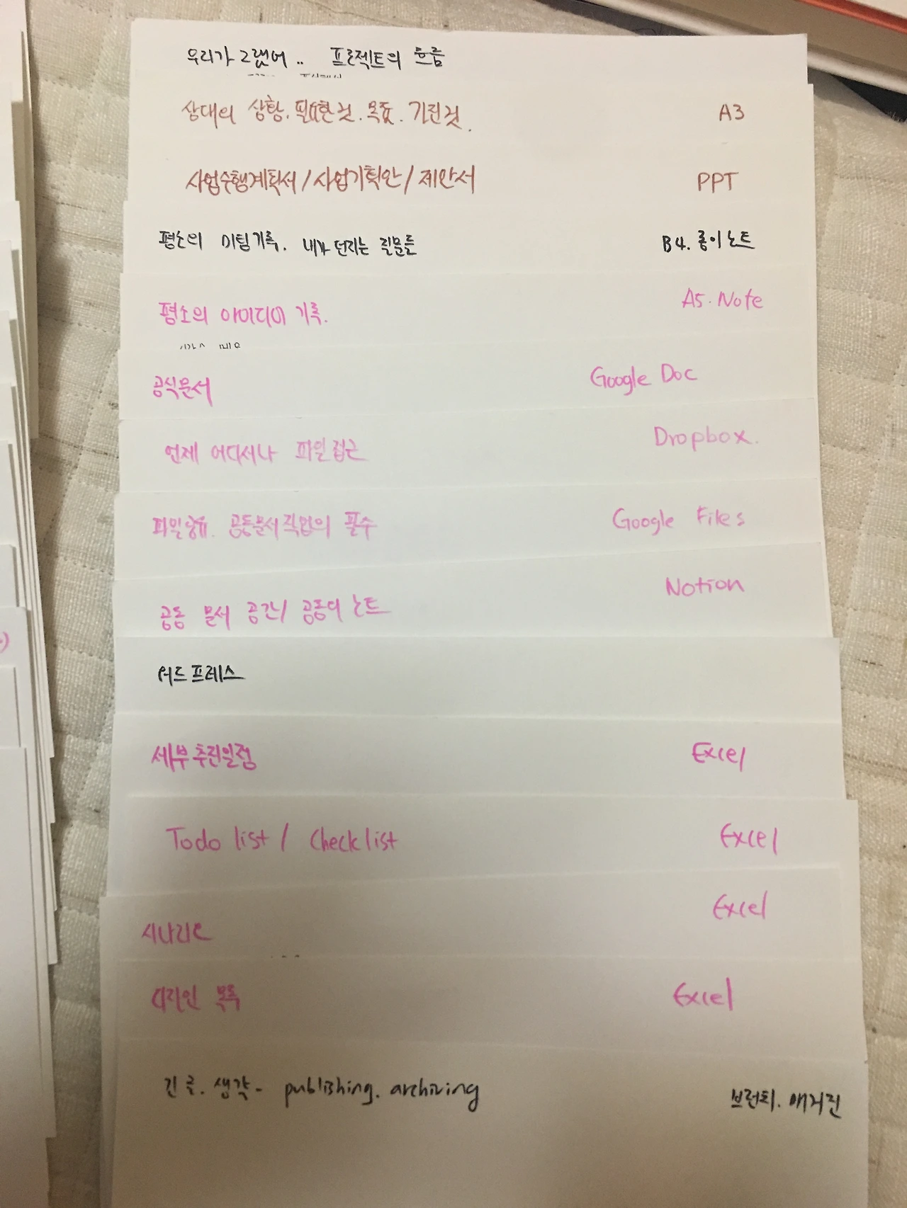 순전히 프로젝트를 해나가면서 경험에 의해 만들어간 나의 도구이자 방법들이다. 나의 사고방식과 긴밀하게 연결되어 있을테니 타인에게도 적절할지는 모르겠다. 나와 사고방식이 비슷하면서 프로젝트를 해나가는 분들에게 도움이 될까 하여 구상해 보았다.