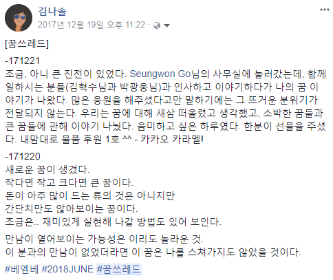 # 꿈쓰레드 1호 - 2018베엠베