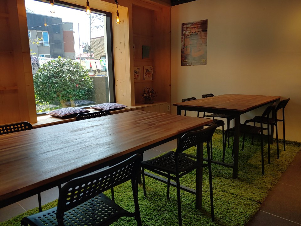 아직까지 대관이나 공간대여쪽의 문의가 들어온 적이 없어서, 물론 이곳이 홍보가 안되서 모르시는 분들이 많기도 하고 대관은 가격이나 정해진건 없는데 일단 다양한 사람들이 많이 오고갔음 하네요. 저희 차도 저렴하고요(커피 2천원). 이 공간을 필요로 하는 분들이 계시면 부담없이 쓰실 수 있지 않을까 싶네요