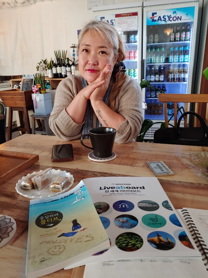 필리핀을 비롯해서 외국생활을 20여년간 했는데 몰디브에서 9년간 살면서 에이전시를 운영했었고 세계 각지를 돌아다니며 특히 해양레저 스포츠에 관심이 많아 바다를 둘러봤는데 제주도처럼 아름다운 곳이 없더라는. 어딜가도 볼 수 없는 아름다운 연산호 군락에 반하고 따뜻하고 멋진 제주의 매력에 끌려 제주도를 선택했고 지금 이주한지 1년차이다.