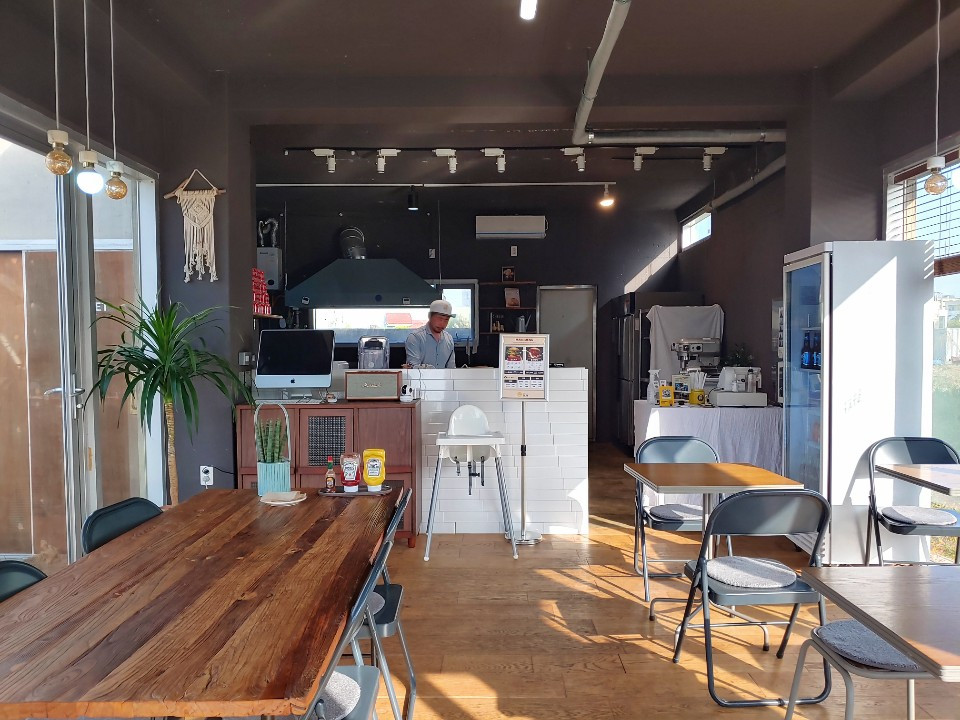 사실 저도 장사는 처음이라,,,일단은 내가 있고 싶은 곳에서 하고 싶었고 다른 가게나 상권들과 크게 부딪치지 않으면서 할 수 있는 곳이 어딜까,,,3개월 가량 제주도 여기저기를 둘러보다가 가장 맘에 든 곳이 여기였어요. 햄버거는 2012년에 뉴욕에 여행을 갔었는데 그때만 해도 지금처럼 뉴욕쉑쉑버거가 유명하지 않았을때인데 그때 먹어본 그 쉑쉑버거에 충격을 받아서,,,, 버거 안에 고기 패티가 미디엄으로 나온거예요, 분홍빛 . 너무 놀랬죠~ 그 후로도 여러곳의 여행지에서 꼭 햄버거를 먹었었던거 같고 늘 인상적이었어요. 해서 햄버거는 내게 늘 기억에 남는 음식이어서하게 되었고, 또 내가 하면 무조건 잘 될 것이다 라는 자신감이 있었어요. 그래서 시작한건데 뭐 계속 적자네요 ㅎㅎ
