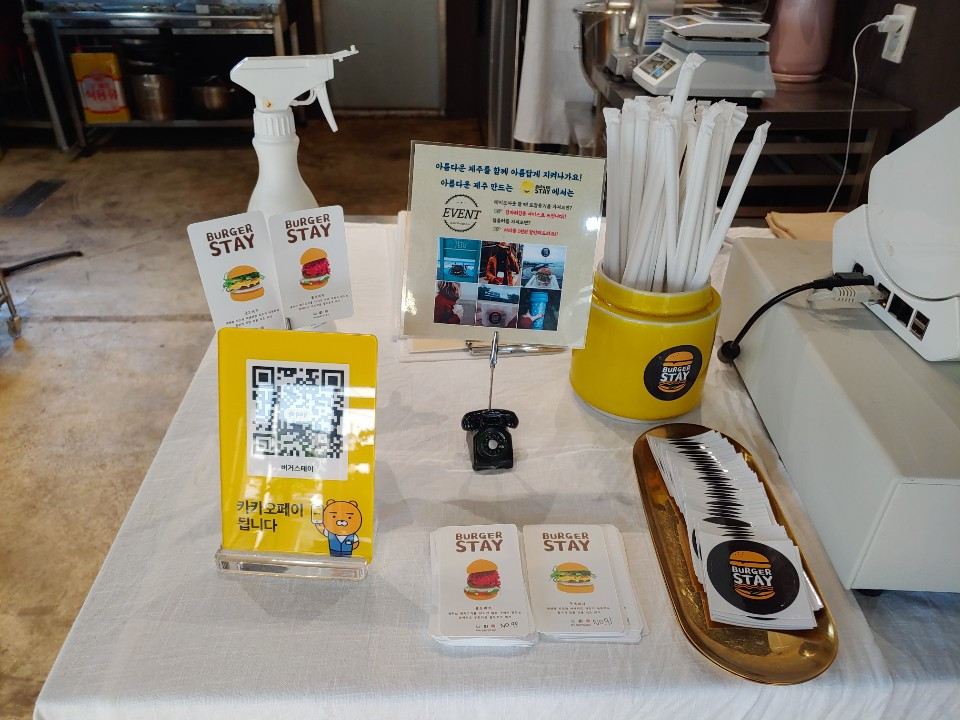 버거스테이에서는 거의 모든 식재료-돼지고기, 양파, 무, 비트 양배추가 제주산이고 테이크아웃을 할 때 포장용기를 가져오면 감자튀김을 서비스로 주시고, 텀블러를 가져오면 커피가 천원 할인되는 등 제주의 환경과 제주의 농업인들과도 함께 하는 마음과 열정이 느껴져서 참 좋았다.