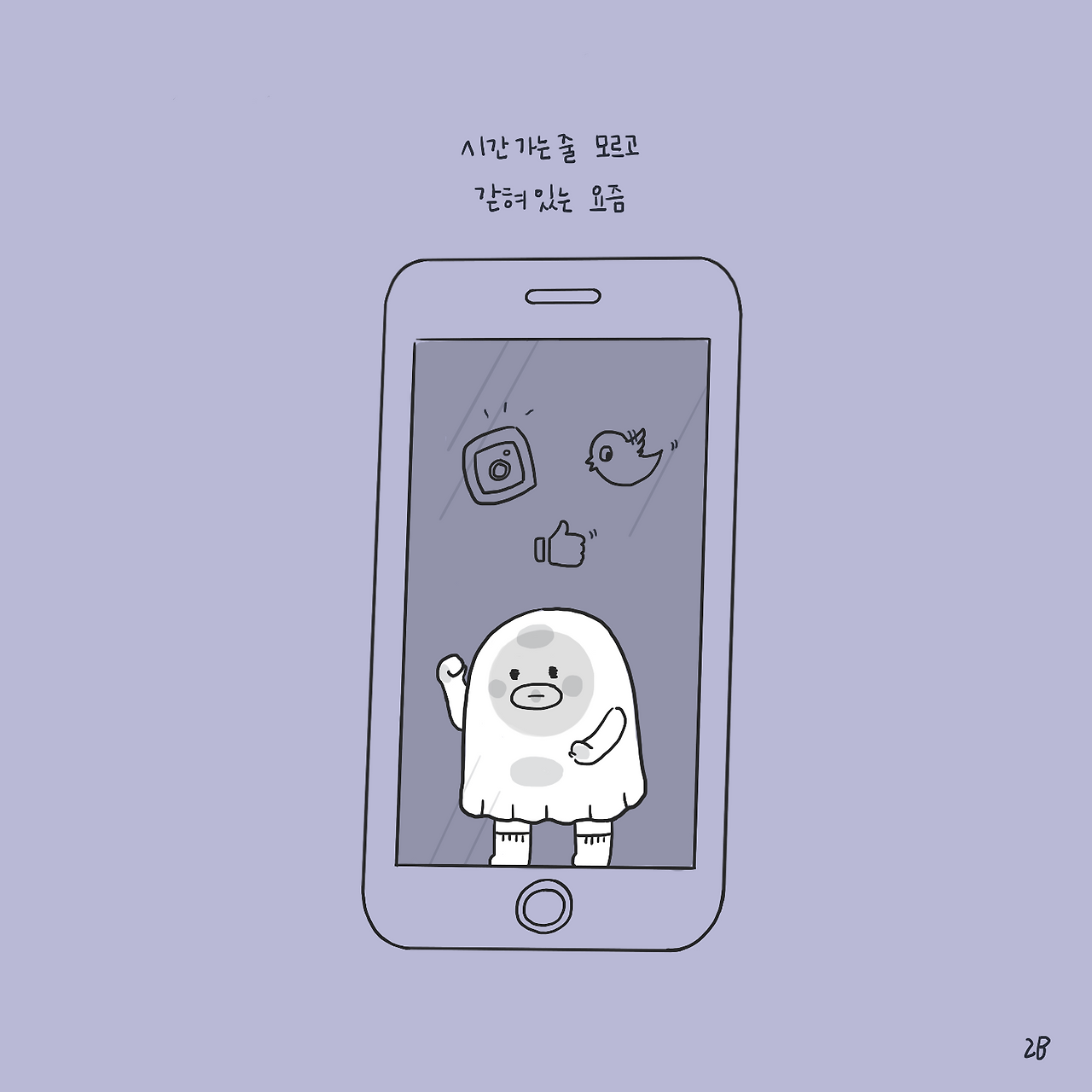핸드폰을 손에서 놓질 않는다.