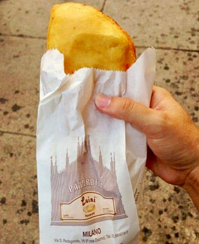 밀라노 두오모 근처에서 시간이 없을 때, 간단하게 허기를 달래고 싶을 땐 루이니(Luini) 빤쩨로띠(Panzzerotti)하나가 정답입니다. 위에 올라갈 토핑을 속에 넣은 튀긴 피자라고 생각하고 쉬울까요? 크기나 모양은 우리나라 호떡보다 조금 작고 통통합니다. 여러 종류의 맛 중에서도 당연히 클래식! 토마토소스, 모짜렐라 치즈가 들어간 클래식입니다. 회전율이 제일 빠르니 제일 맛있을 수밖에요. 언제나 식지 않은 갓 나온 뜨거운 빤쩨로띠를 순식간에 한 입 베어 물 수 있습니다. 당연히 기나긴 줄에 합류해 인내하는 시험을 치르고 나서야 말이죠.