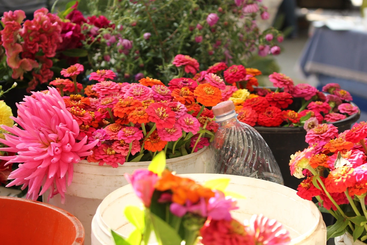 참, 포트럭 파티라고 꽃이 빠지면 섭섭하지요. 얼른 근처 마리엘라 할머니 꽃 매대로 갑니다. 제 앞에는 배가 나온 백발의 할아버지가 여자 친구에게 선물할 꽃다발을 고르고 있습니다. 첫 데이트를 준비하는 소년처럼 할아버지 볼도 발그스름 한 달리아 색이네요. 활짝 웃는 얼굴로 꽃다발을 품에 안고 뒤뚱뒤뚱 걸어가는 할아버지 모습에 제 입가에도 미소가 절로 번집니다. 저 역시 친구에게 선물할 달리아를 한 아름 골라 들었습니다.
