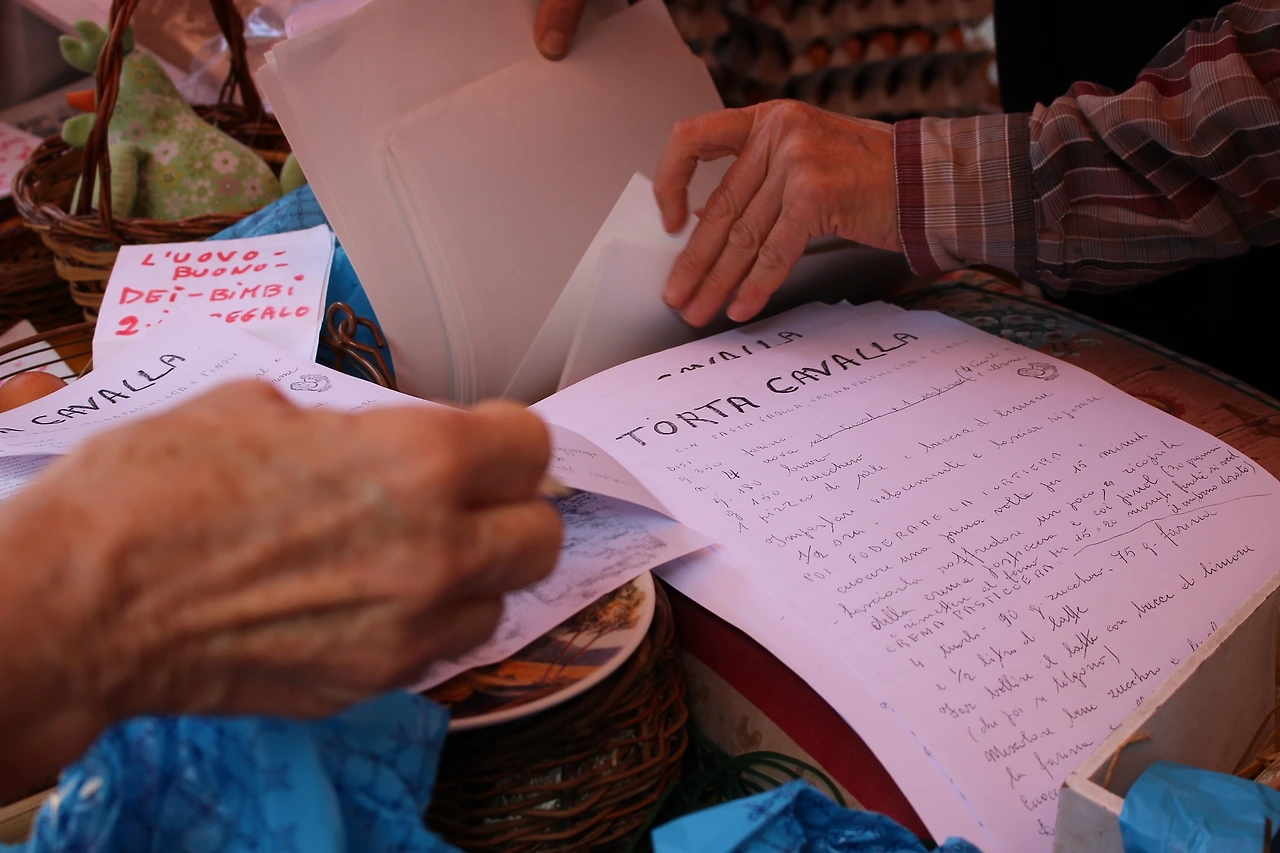 루치아나 아줌마는 달걀이 들어간 레시피를 사람들에게 선물하는 걸 낙으로 삼으세요. 비뚤비뚤 종이 위에 손글씨로 쓴 레시피가 투박하지만 정겹습니다. 오늘은 '또르따 카발라'외에도 피에몬테식 초콜릿 푸딩 ‘부네트’와 뜨거운 계란 크림 ‘쟈바이오네’ 레시피도 눈에 띄네요. 오늘은 루치아나 아줌마의 조언대로 날도 쌀쌀해지고 했으니 유기농 계란과 모스카토 다스티, 설탕이 들어간 따뜻한 크림 쟈바이오네를 만들어볼까요? 친구가 만들어 올 피칸 파이에 함께 곁들여 내면 좋겠습니다.