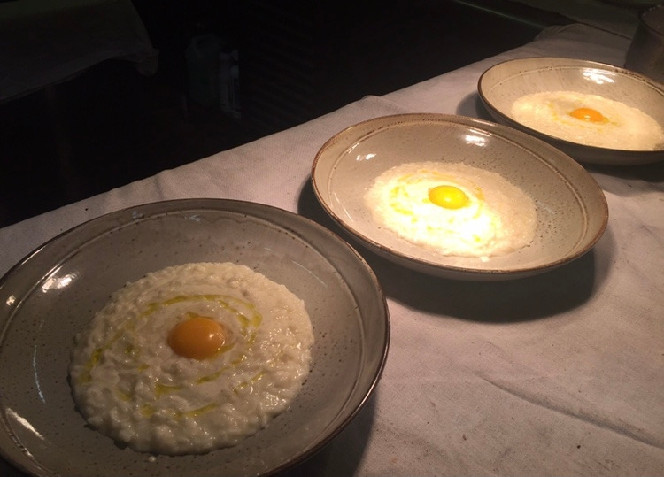 버터를 살짝 두른 후 감자를 볶다가 부드러운 감자 크림을 만들어 감자 크림 속에 수란을 퐁당 담궈 숨겨내는 요리는 쓰리 스타 미슐랭에 빛나는 피올라(Piola)의 셰프 엔리코 크리파(Enrico Crippa)의 야심작이지요.