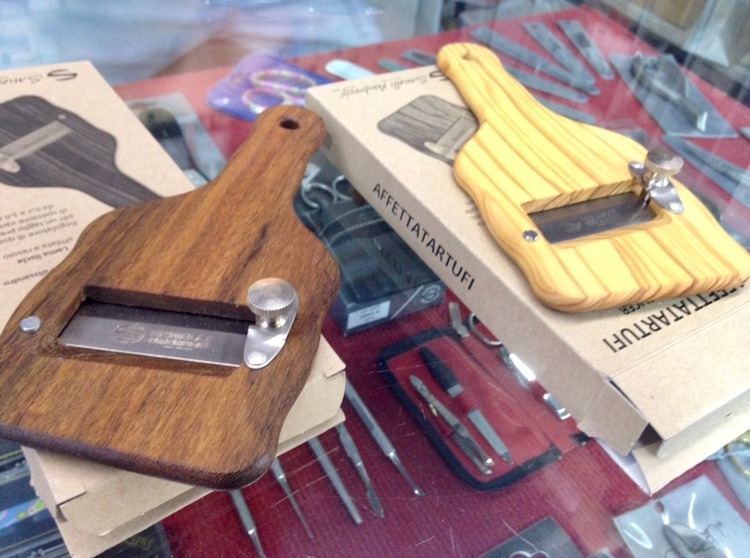 타르투포 비앙코 10그람에 10만 원 가까이 지불해야 한다니...... 공감이 되실런지요? 10그람이라고 하니 아주 짜게 느껴지시겠지만, 타르투포는 땅 속에서 자라는 둥그런 버섯으로 껍질은 딱딱한 편입니다. 타르투포 비앙코는 표면이 매끈하고 껍질이 조금 더 부드러운 편이지만, 타르투포 네로는 껍질이 그야말로 거북이 등껍질을 연상시킬 만큼 우둘두둘하고 딱딱합니다. 향이 좋아서 먹는 타르투포지만 이탈리아 인들은 딱딱한 질감을 즐기는 편이 아닙니다. 그래서 그들이 생각한 타르투포 칼! 한 손에 손잡이가 쏙 들어오고 두께 조절이 가능한 휴대용 대패라고 생각하시면 됩니다.