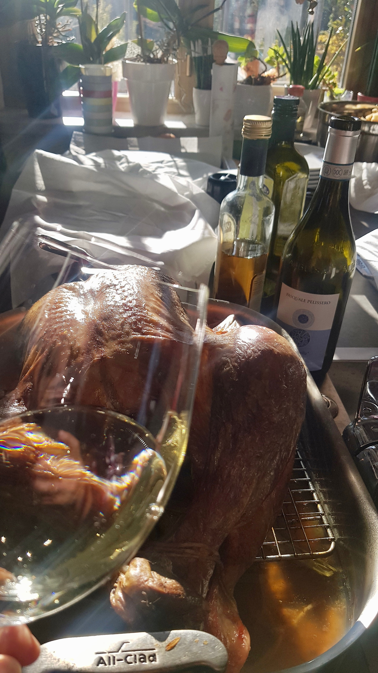 오늘도 역시 추수 감사절을 맞아 제가 도착하자마자 짠! 하고 칠면조 구이가 오븐에서 나오더군요. 저라면 칠면조 옆에 감자, 양파, 당근을 함께 넣어 사이드 요리까지 그냥 손쉽게 갔을 거예요.