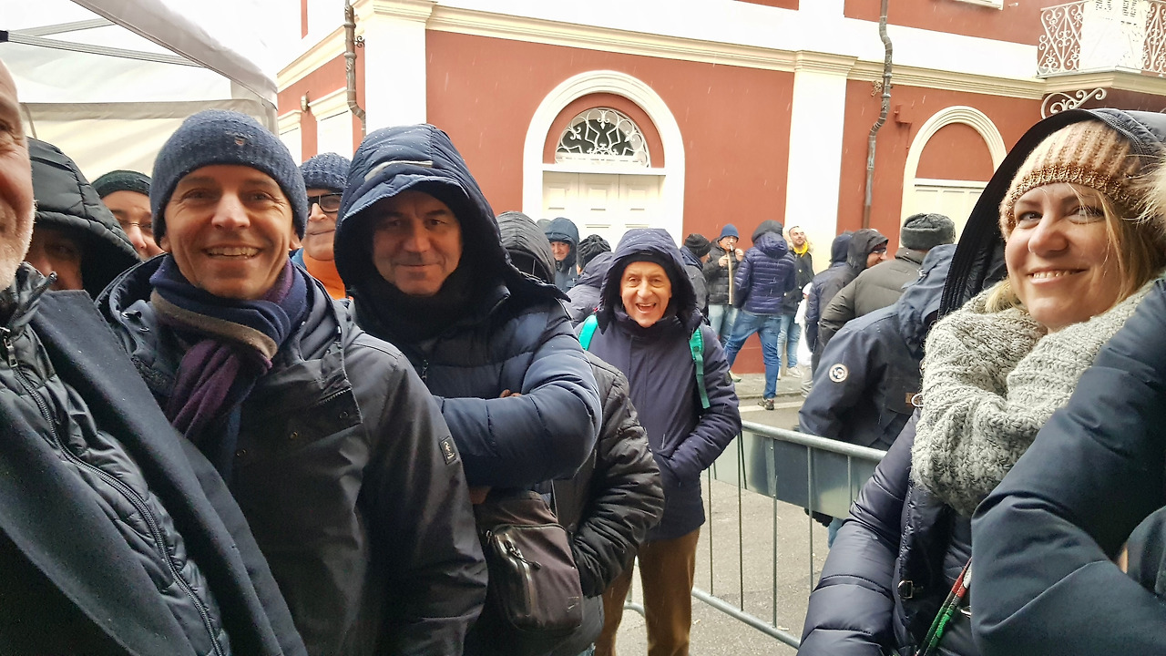 진입 골목이 여러 개라 이렇게 많은 사람들이 이 작은 마을에 모일 줄 몰랐습니다. 길을 걷다 보니 여기저기 아는 얼굴들이 보입니다. 손에는 벌써 증류주 그라빠를 들고 말이죠. "너희는 대체 몇 시에 도착했던 거야?" 정석대로 아침 다섯 시에 도착해 다 같이 기나긴 볼리또 미스또 코스 요리를 먹고, 몸을 데운다는 명목으로 다시 바에 들러 그라빠를 한 잔 하며 웃는 사람들. 언제 코로나 시국이 있었나 싶습니다.