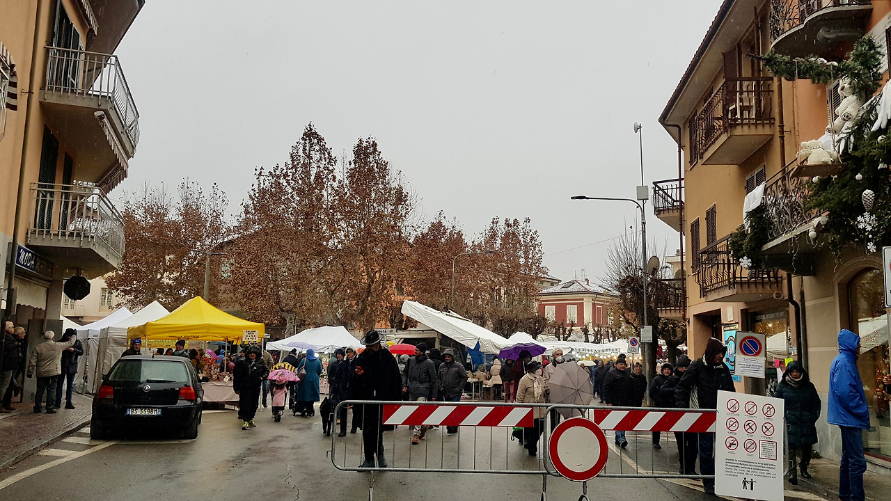 집에서 자동차로 한 시간 정도 걸리는 카루(Carrù)에 도착한 시간은 아침 아홉 시쯤입니다. 하늘이 온통 흐려 도무지 아침 같지 않은 날입니다. 추운 날씨지만 축제 때문에 차는 카루 중심가까지 들어가지 못하고 외곽에 세우게 됐습니다. 설렁설렁 일하는 듯한 이탈리아 사람들이지만, 이렇게 작은 축제에도 경찰들이 주차 통제, 축제 통제를 철저히 하는 모습이 눈에 확 들어왔습니다. 문득 통제 없이 진행되어 커다란 인명 피해가 있었던 한국의 할로윈 이태원 참사가 떠올라 순간 기분이 착 가라앉았습니다.