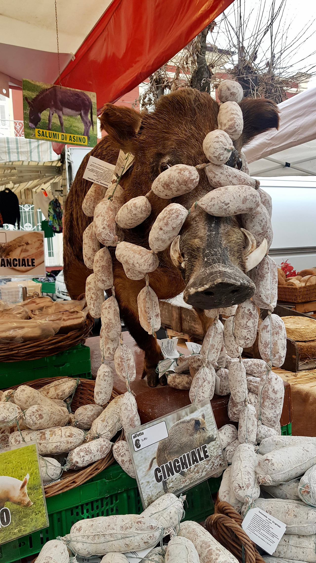 조금만 걸으니 어느 축제에서나 그렇듯 길게 장이 섰습니다. 갖가지 치즈며 살라미부터 새빨간 크리스마스 스웨터를 파는 매대까지 다양합니다.
