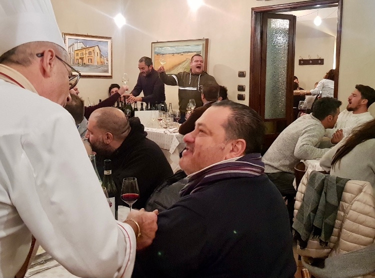 우리보다 먼저 왔던 앞 테이블에는 식사가 거의 끝났는지 새빨간 앞치마와 요리 모자를 쓴 사장이 마치 산타클로스인 양 허허 웃으며 들어와 테이블을 돌며 증류주 그라빠를 권합니다.