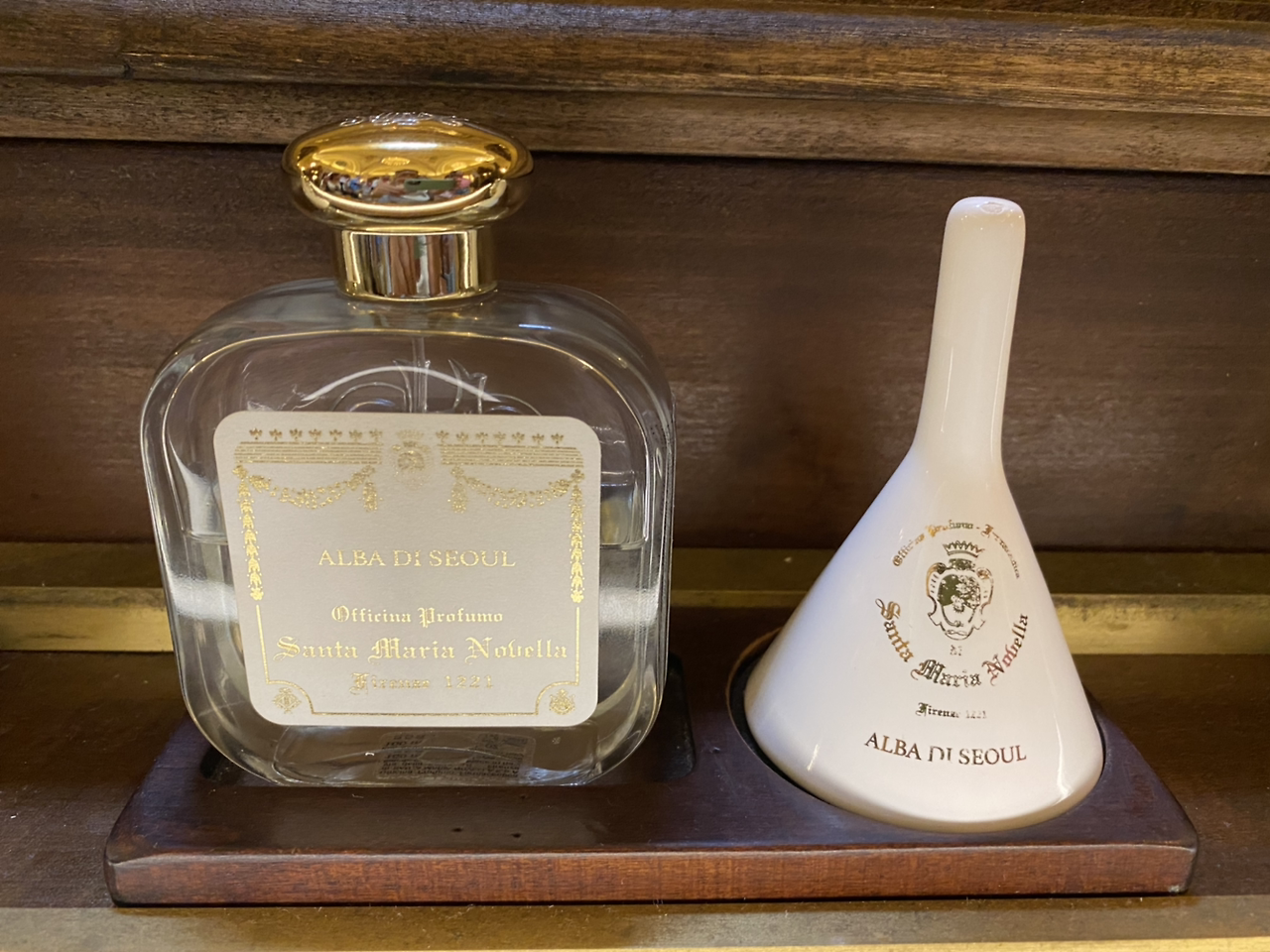 1221년부터 산타 마리아 노벨라 수녀원 정원에서 채취한 천연 재료로 약이며 크림 등을 만들어 팔던 약국이라지만, 이젠 약국이라기 보단 고급스러운 향수 가게에 가깝다. 가게 안에서 약이라고 이름 붙일 만한 상품은 도무지 하나도 찾아볼 수 없었으니까. 그들 스스로도 이름을 farmacia (약국)이 아니라 <Officina profumo-farmaceutica>(향수- 제약 공방)으로 바꾸어 명명하고 있다. 외국인 관광객들이 긴 줄을 서서 너두나도 앞 다투어 지갑을 활짝 열어대는 고급 향수 가게에서 스스로를 Profumeria 프로푸메아 (향수 가게)가 아니라 Officina 오피치나(공방 혹은 공장)으로 명명하다니 조금 당황스럽지만, 공방처럼 ‘장인 정신 기반의 자체 생산’의 의미를 강조한 듯했다.