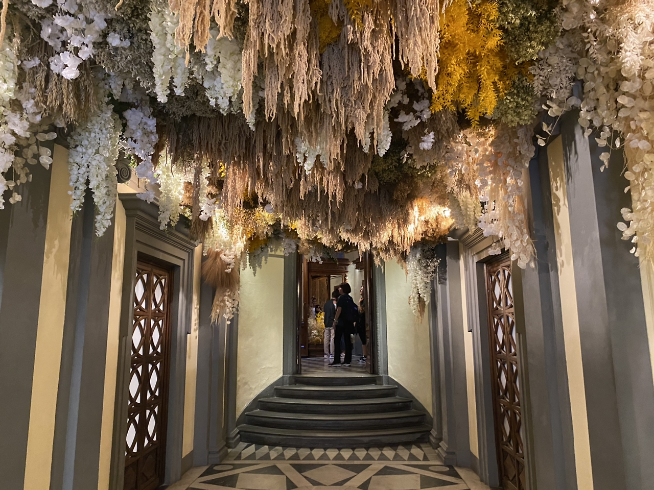 오랜 기다림 끝에 드디어 가장 바깥 문을 넘어 한 발을 들이밀었다. 산타 마리아 노벨라 약국의 기다란 입구. 어디서 향기가 코를 유혹하나 했더니, 천장에는 온통 건조된 생화들이 폭포수가 쏟아질 듯 거꾸로 매달려 있다. 마른 꽃들이 만발하니 그 은은한 향기에 나도 모르게 깊이 숨을 들이 쉬었다.