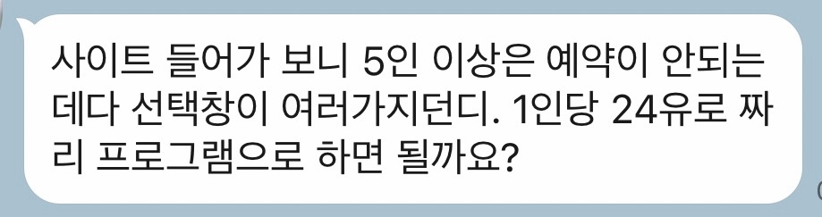 Q. 인터넷 예약은 5인 이상은 불가능해요?