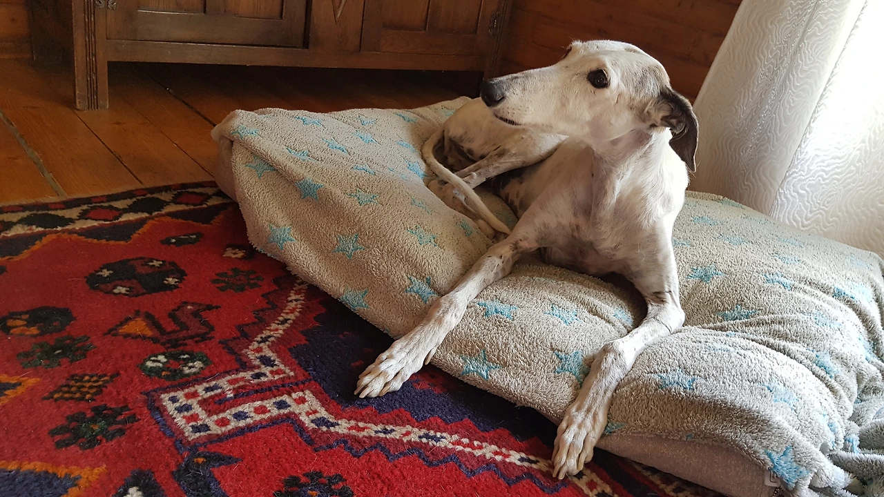 “아리아는 네 살 때 우리 집에 왔어요. 스페인에서 왔죠. 아리아 같은 개는 사냥용이나 경주용으로 키워져요. 그리고 네 살쯤 되어 더 빨리 달릴 수 없게 되면 목을 매달아 죽여버린답니다.”