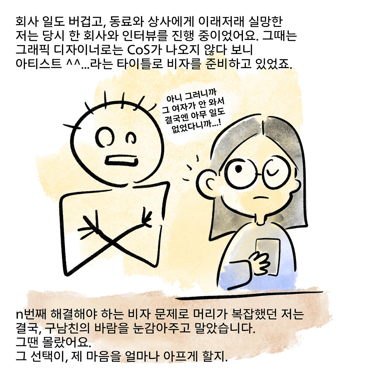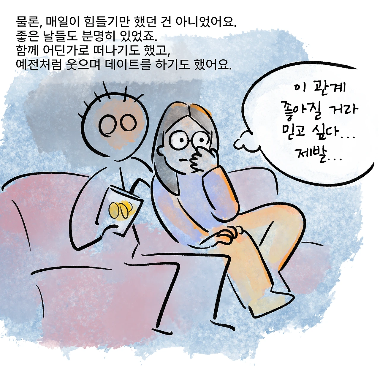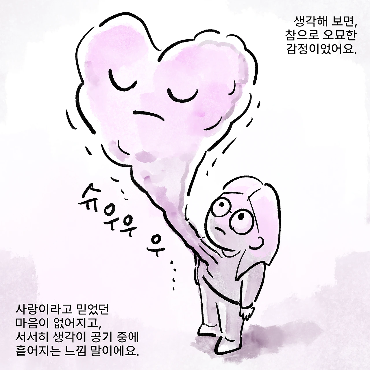 낮밤툰 16화는, 아껴두었던(?) 구남친과의 일을 순한맛으로 풀어보았습니다. 평생을 함께할 사람이라 믿었는데, 손쓸 새 없이 그 사랑이 옅어지고 식어가는 과정을 지켜보는 건 결코 쉽지 않았습니다.