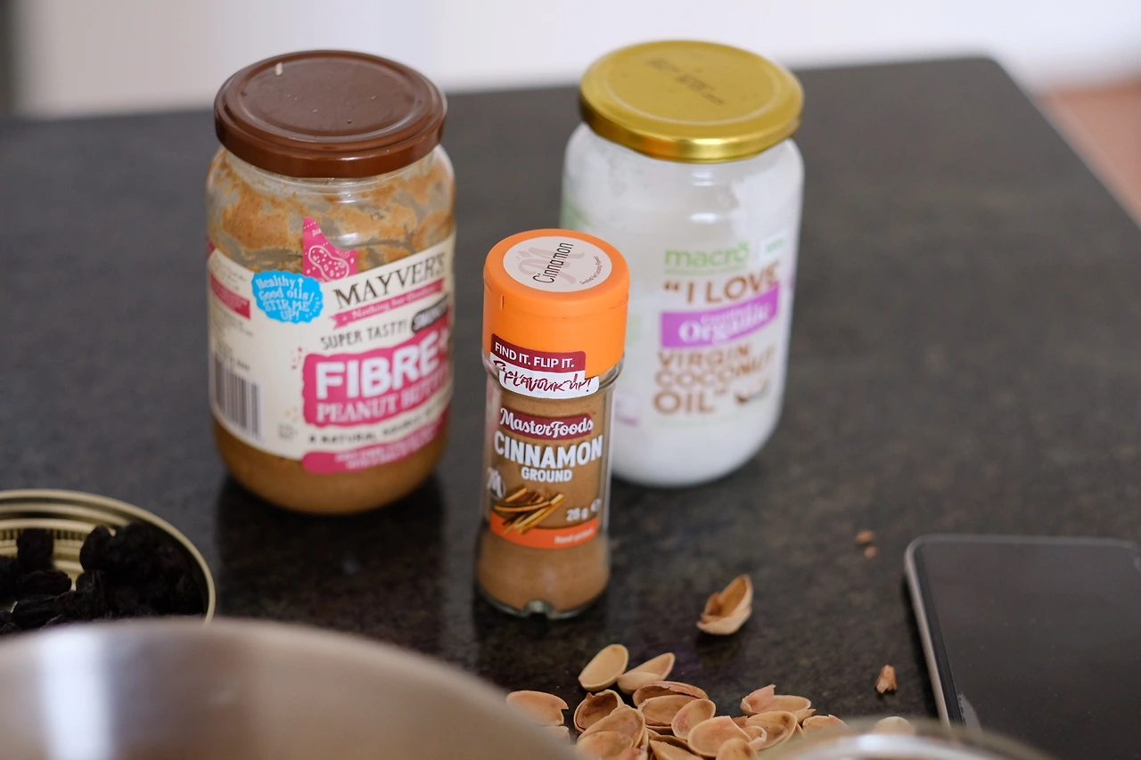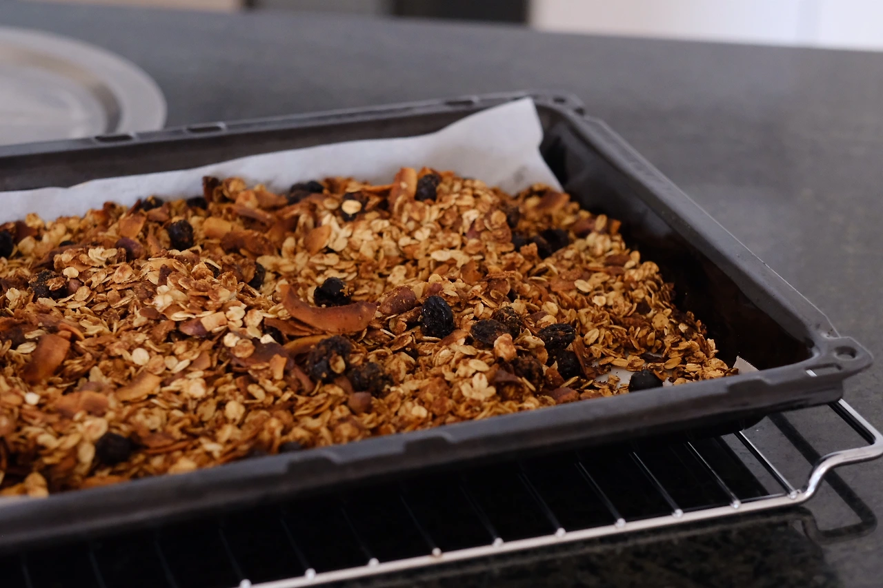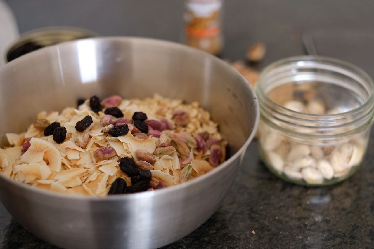 저는 여러 가지 재료를 넣는 것보다 두세 가지의 조합으로 만드는 것을 좋아합니다. 오늘은 코코넛칩과 피스타치오, 그리고 레이즌을 넣었습니다. 안 달고 맛있어요.
