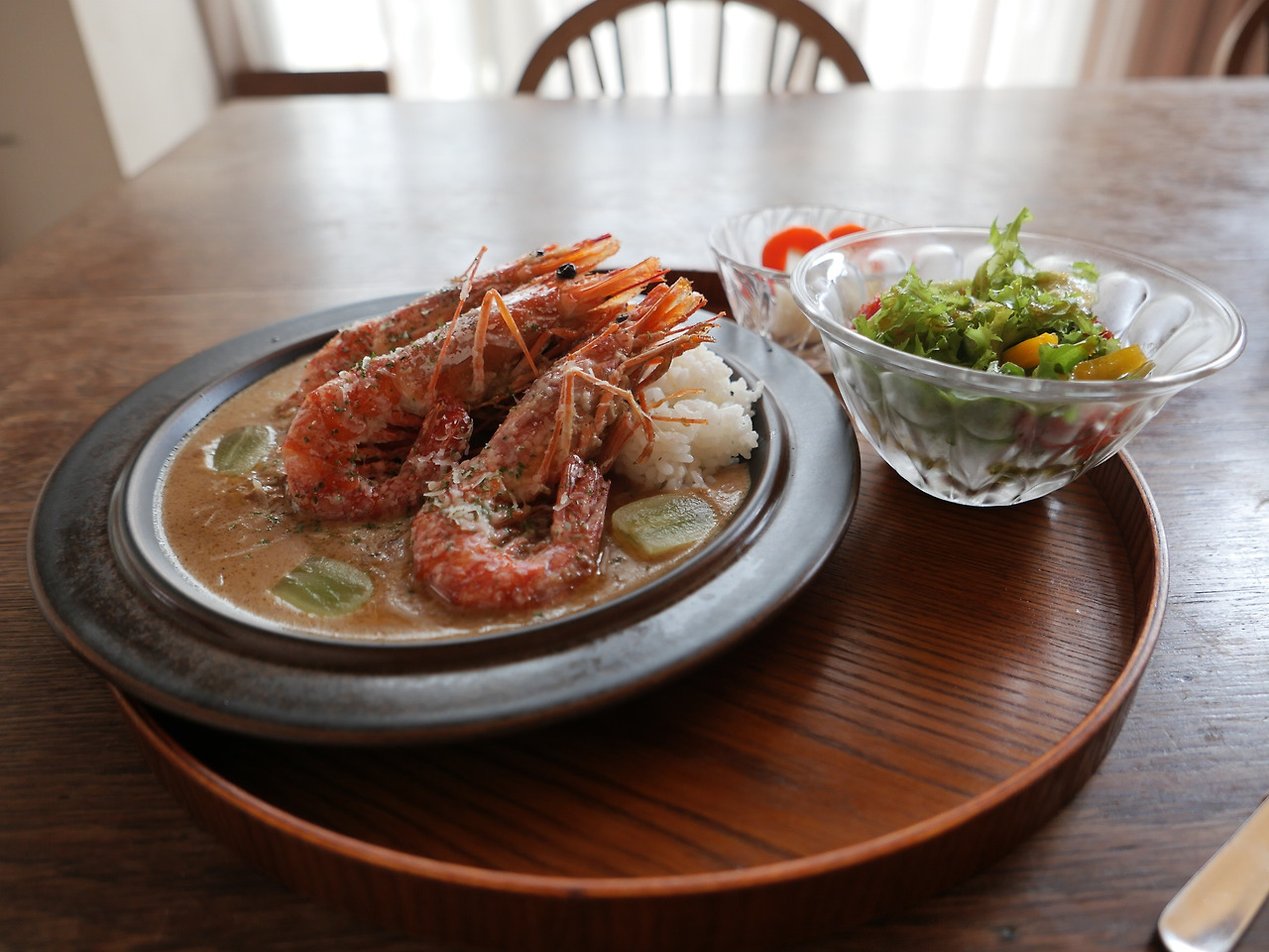 코코넛크림이 들어간 부드러운 에비 카레. 곁에는 제주 레몬으로 드레싱 한 샐러드. 개였다면 혀로 싹싹 핥아먹었을 맛. 그것이 개들의 감사 인사하는 방식. 아이였다면 손가락으로 그릇을 훑어 그대로 입에 넣어 쪽 할 법한 맛. 그것은 아이의 인사법. 삭삭 스푼이 지나갔던 자리에 최소한으로 남은 카레 자국을 보며 난 어떻게 인사를 할지 단어를 조합하고 있었어.