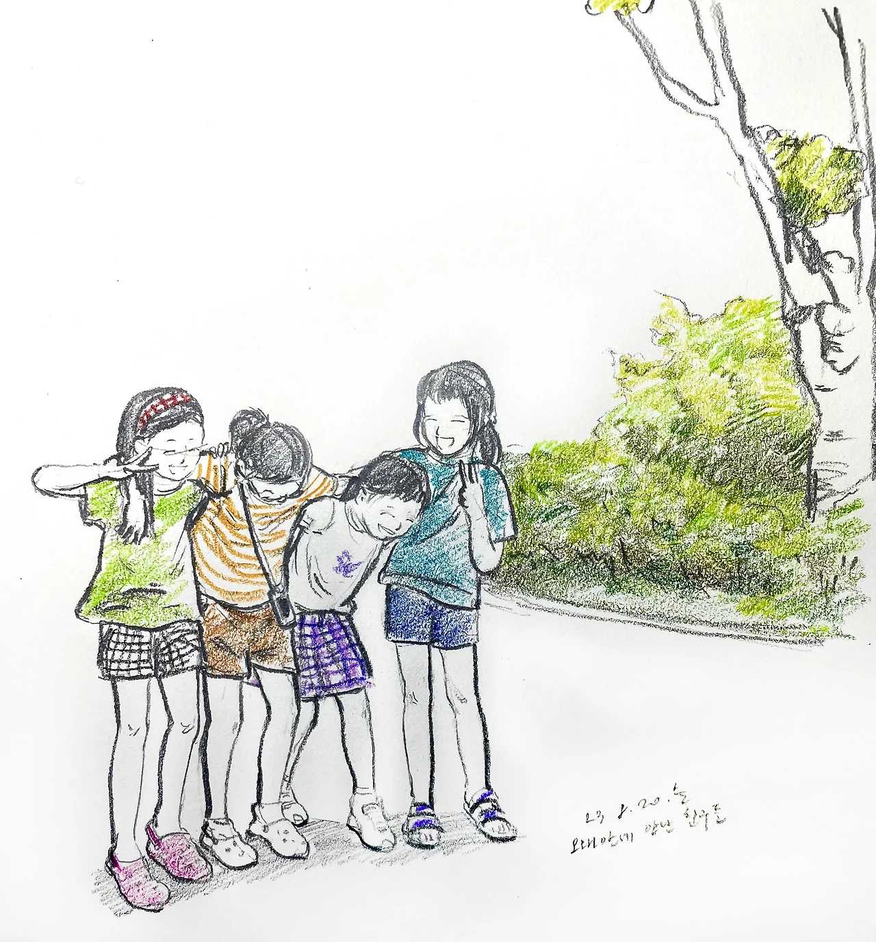 #1일1드로잉#150일#10세#육아#엄마#일상#육아일기#에세이#그림책#그림작가#창작그림책#일러스트#순간#드로잉#연필화#소나기#여름#힐링#수채화#모녀#여유#초여름#싱그러움#색연필#폭우#장마#여름방학#도서관