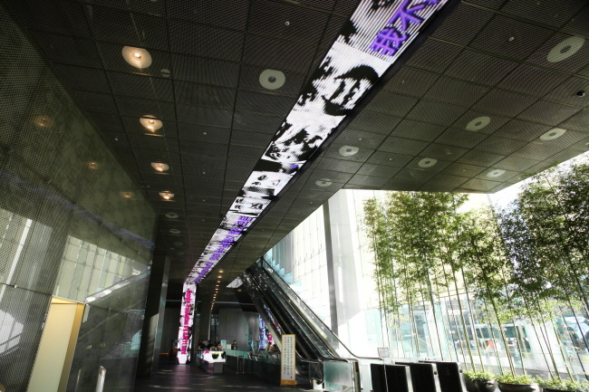 <Friendƨ in the living room>은 조지 오웰의 <동물농장>에 등장하는 ‘프린드(freind)’5)개념을 바탕으로 전개된 작업으로 현대예술은 물론 현대사회에서도 중요하게 여겨지는 우정과 협업, 공존에 대해 이야기한다. 이 작품에는 모자이크 제너레이팅 영상과 연결된 광섬유 작업인 <Can’t take my eyes off you>와 <You are my sunshine, my only sunshine> 이 등장하는데, 이들은 모두 유투브 사용자들이 올린 샘플들을 리믹스해서 실시간으로 재생되고, 이는 또 다시 라이트 작업과 연동되어 전시장을 채운다.