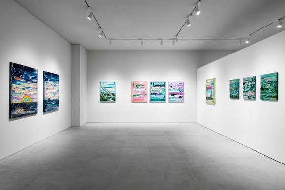 모든 이미지가 사실적이지 않은 그림 속에서 시선을 사로잡는 무지개의 등장이 처음에는 당황스러웠다. 하지만 생각해보면, 무지개로 인해서 그림 속 자연은 무지개 ‘너머’로 이어지는 것일 수도 있겠다는 생각이 든다. 작가가 자연 ‘안’에서 만났던 자연과 느낌은 작가의 손을 통해서 캔버스로 이어지고, 캔버스에서 마주하는 자연의 생명력과 경의로움은 다시 무지개를 통해서 그림 밖으로 이어지는 것은 아닐까. 그렇게 굽이굽이 이어지고 이어지는 이야기는 그림을 보는 관객에게 무지개 너머 집으로 돌아가는 것을 꿈꾸는 도로시처럼 꿈과 위로를 줄 수도 있겠구나 싶었다.