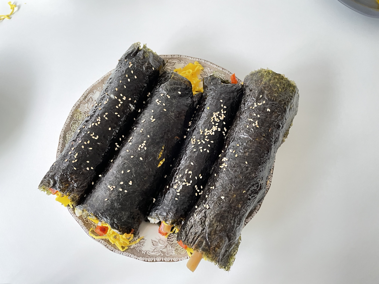 김밥도 만드려 했으나, 그 전 주에 키토 김밥을 대차게 말아먹은 탓에(...) 남편이 근처에서 김밥을 사 왔다.