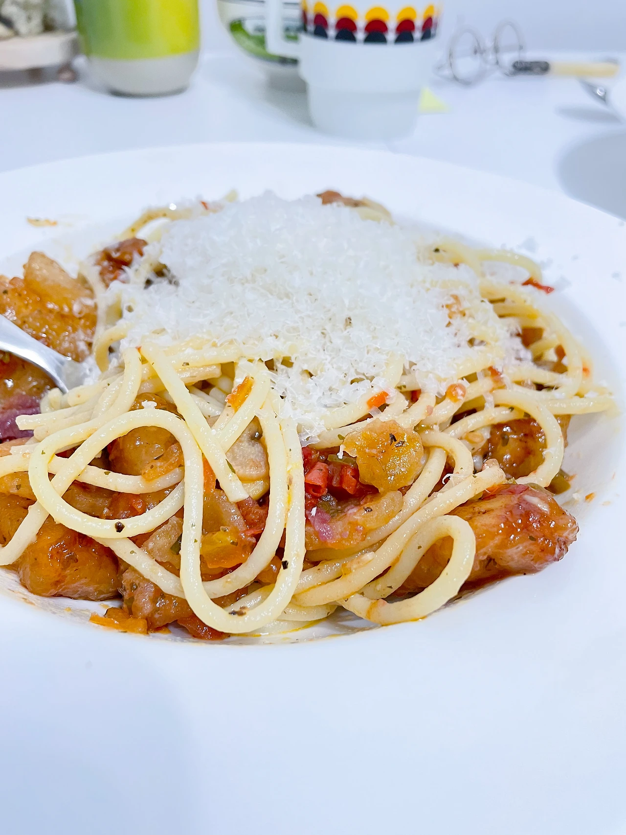사실, 냉동실에서 탕수육을 꺼내면서도 반신반의했다. 파스타와 탕수육의 조합은 뭐랄까, 그 어떤 접점도 없는 것 같은 애들이 심지어 사귄다네?! 하는 느낌이다. 맛을 보니, 그 둘이 심지어 다음 달에 결혼한대!라는 소식을 들은 것 같다. 한 마디로, 정말 맛있다는 얘기다.