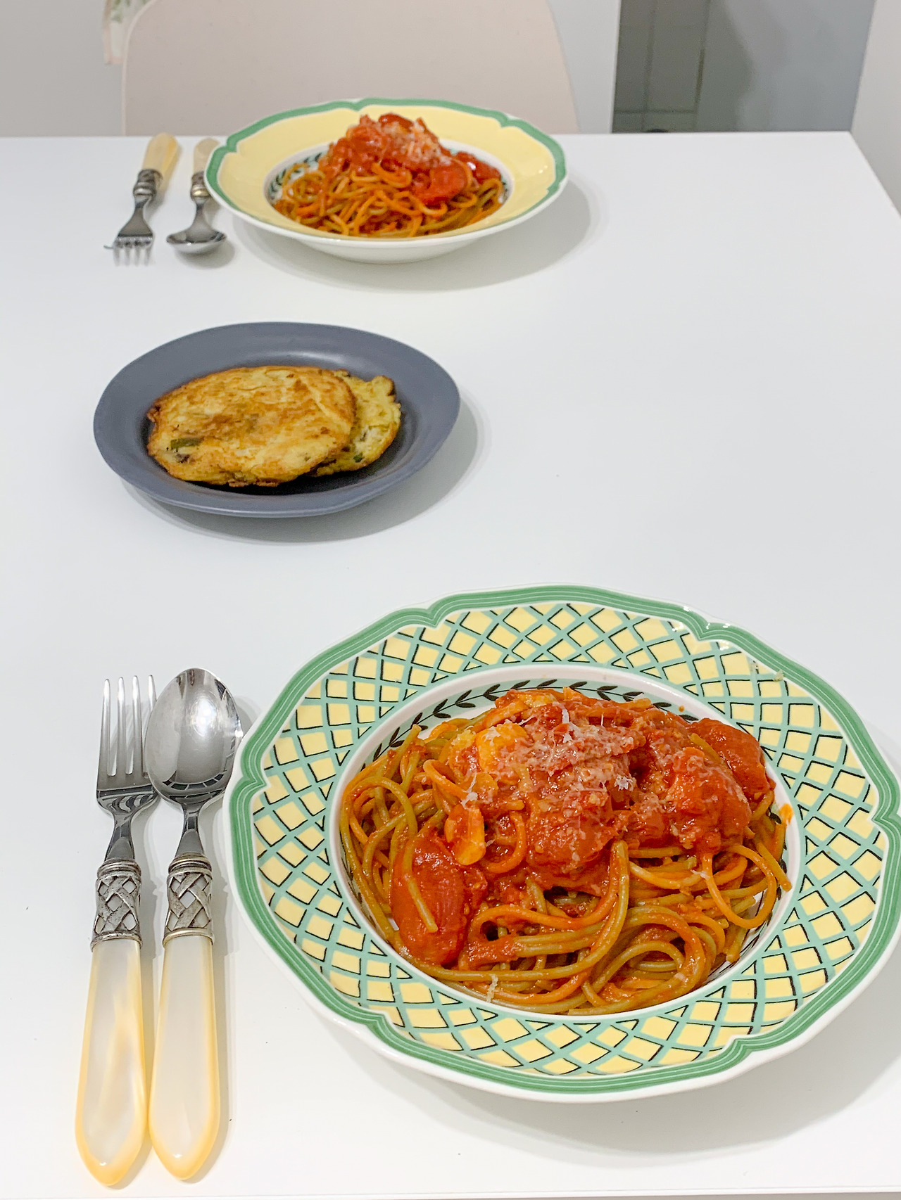파스타 면을 한가득 입에 넣고 우물거리면 새콤함과 약간의 달큰함 그리고 치즈의 끈적한 풍미가 살아나 마치 잘 내린 커피 한잔, 혹은 좋은 와인 한 잔을 마시는 기분이 난다. 파스타와 마늘 모두가 물렁한 식감이기에 바삭한 게 당긴다 싶으면 엄마가 준 녹두전을 한 입 먹는다. 안 어울릴 것 같은 조합이지만 서로를 보완하는 맛이다. 마치 나와 남편처럼. 부드럽기만 하면 뭉게고 싶고, 바삭하기만 하면 부서지기 쉬우니까.