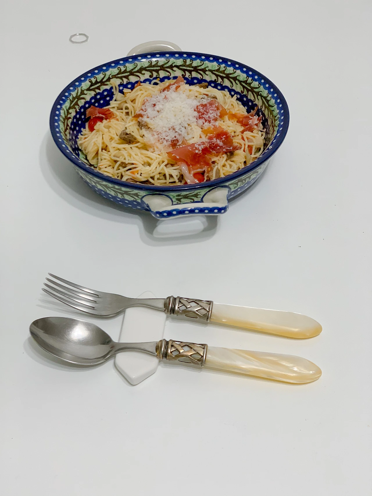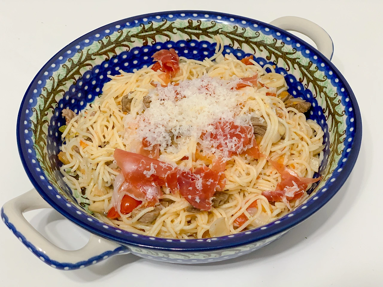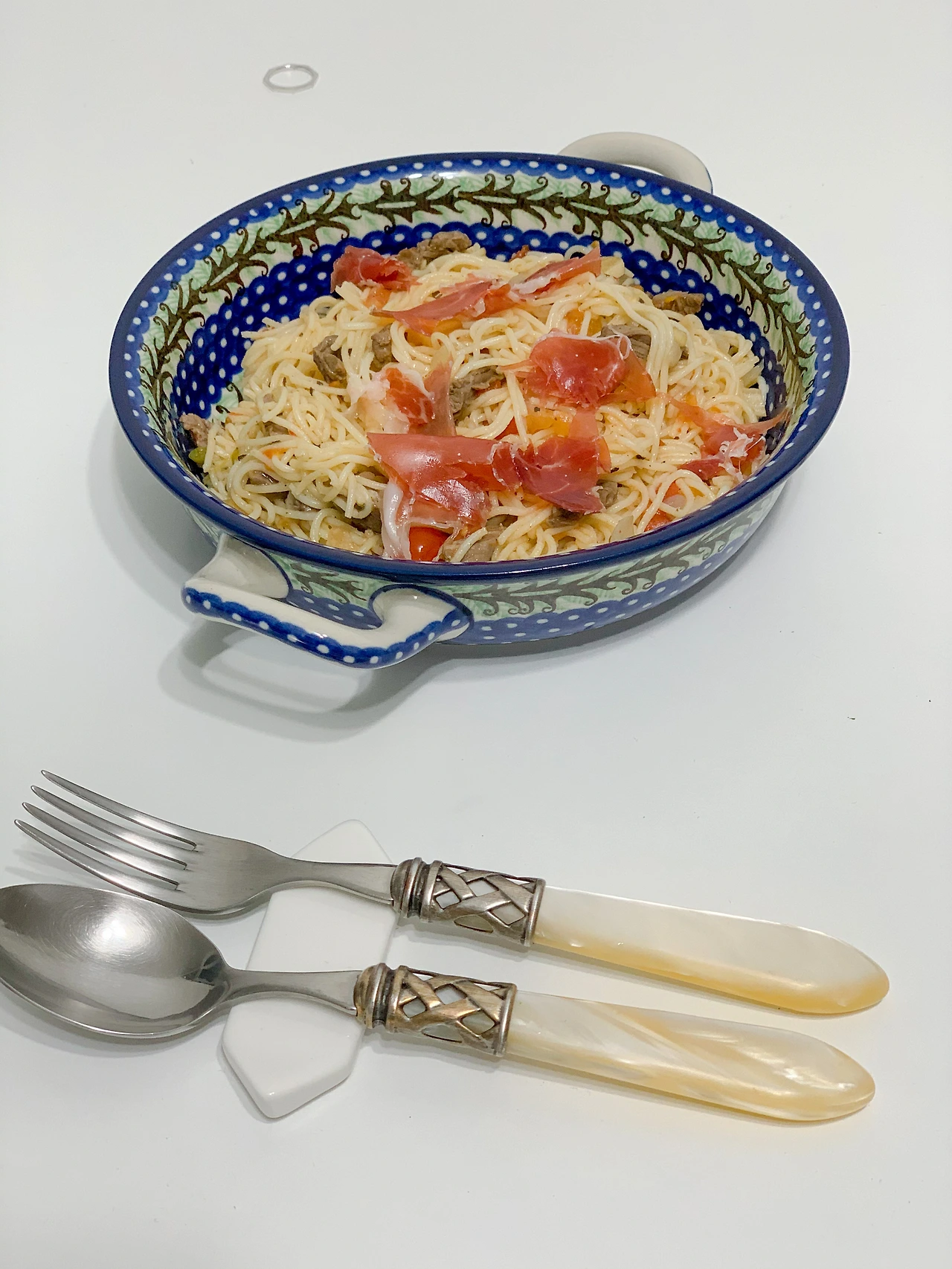 재료는 다떼리노 토마토, 카펠리니 면, 소금, 마늘, 편의점 하몽, 실버펀팜 리저브 1% 소고기 안심, 그리고 파르미지아노 레지아노다. (우리 부부의 평소 식단을 생각하면 꽤나 간촐하다)