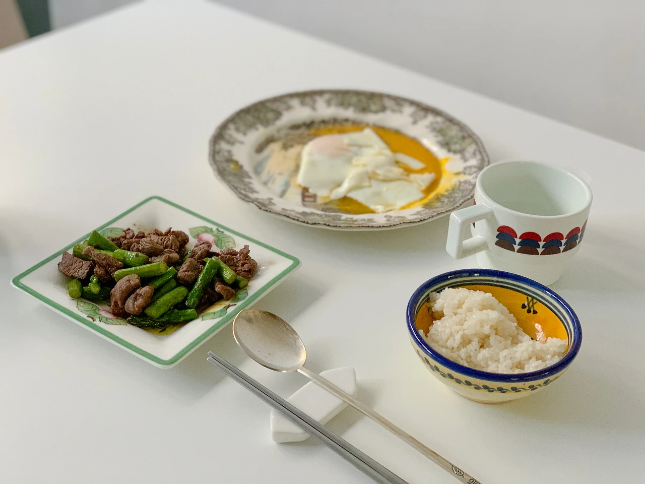 계란 후라이는 고소했고, 안심은 실크처럼 부드러웠으며, 아스파라거스는 씹는 맛이 있었다. 이렇게 먹고 나니 회사에 도착했는데도 배고프지 않았다. 쌀의 마법인가..? 여튼 점심 먹기 전까지도 속이 든든하니 빵이나 간식을 덜 먹는다. 그 덕분에 저녁때의 더부룩한 느낌도 거의 사라졌다.