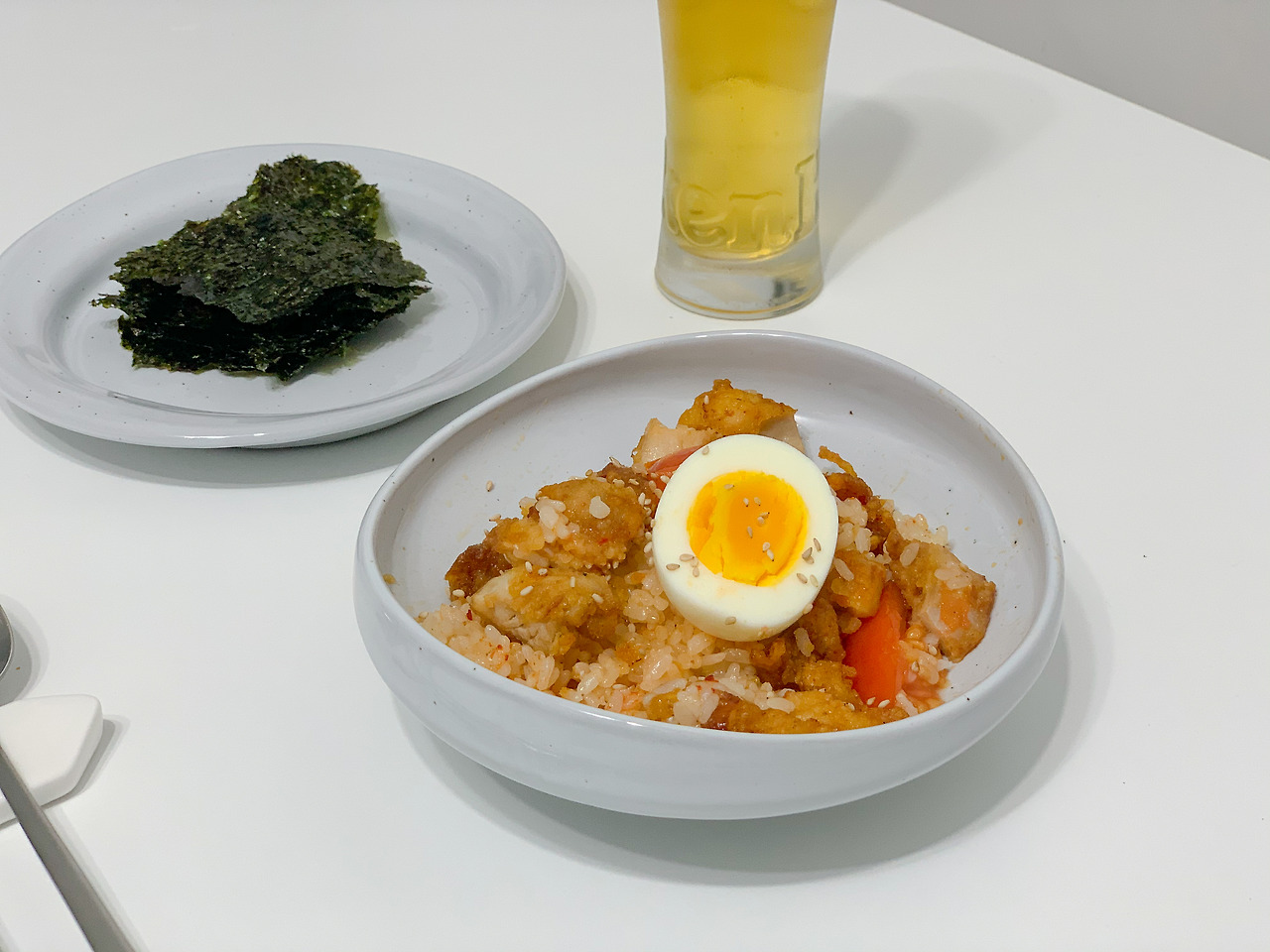어제 홧김에 치킨을 시켰다. 다 먹을 수 있다고 생각했는데, 1/3도 못 먹어서 바로 냉동실 행. 오늘 저녁, 배는 고픈데 파스타는 먹기 싫고 마침 밥이 남아있어 치밥을 만들어봤다.