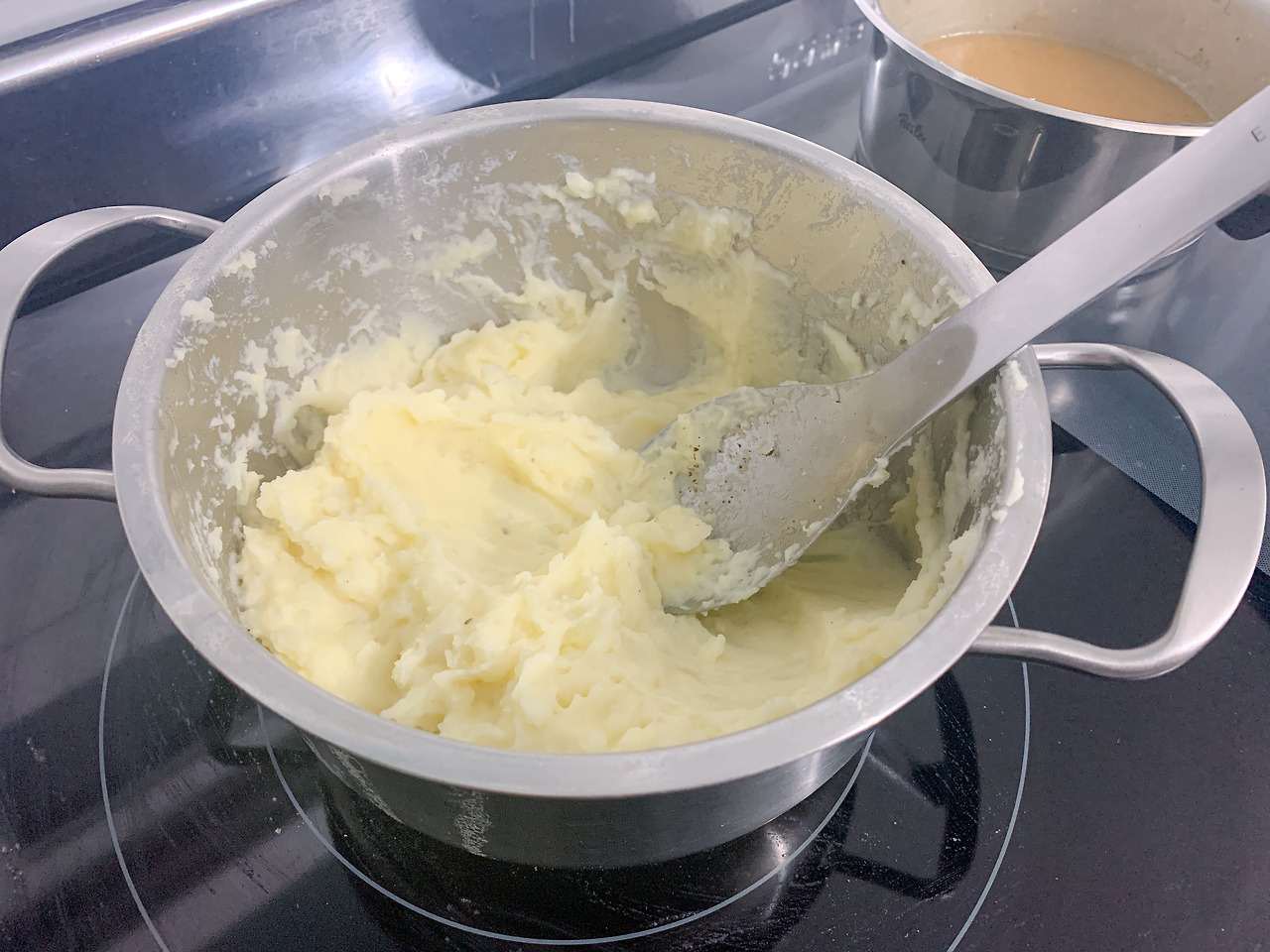 차가운 물에 썰어 놓은 감자를 5~10분 정도 담가 놓는다. 그다음 냄비에 감자를 넣고 포슬해질 때까지 끓인 뒤, 물을 버리고 소금 많이, 후추 조금, 버터 70g 정도를 넣고 으깨준다. 감자가 많이 으깨졌으면 우유를 넣고 또 으깬다. 남편은 홀리데이 때마다 부드러운 매쉬 포테이토를 먹어서, 최대한 감자 알갱이가 없게 꾹꾹 으깼다. 회사에서 힘든 일이 있었거나, 내게 스트레스를 주는 사람을 생각하며 으깨면 이 과정이 훨씬 수월해진다.