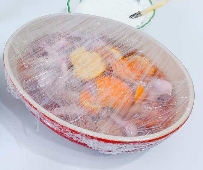 6. 팬 혹은 접시를 랩으로 감싸고 10~12시간 동안 냉장고에 보관한다. (24시간도 가능하다)