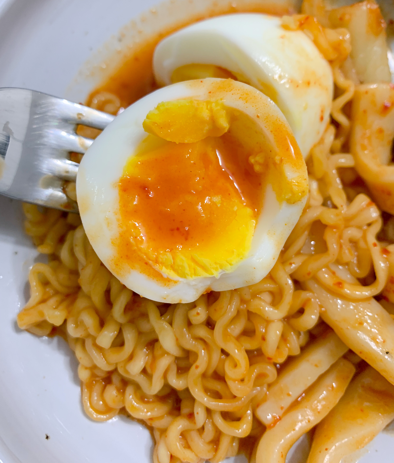 쿄쿄쿄쿄 반숙도 아주 잘 됐고요~ 떡의 쫜득함과 라면 사리의 부드러움, 그리고 어묵의 고소한 맛이 매운 맛의 지휘 아래 입안에서 교향곡을 연주한다. 먹다가 좀 매우면 계란 노른자를 떡볶이 국물에 녹여서 먹으면 또 다른 맛이다. 진하고 걸죽한 느낌이랄까. 이 조합으로 허버허버 먹다가 김치가 있는 부분을 먹으면! 뺌! 마치 베토벤의 5번 교향곡, 운명처럼 미각 세포에 강렬한 충격을 줄 수 았다. 식감 또한 떡볶이의 기본 재료와는 다르게 아삭해서 재미를 준다. 아, 또 먹고 싶다.