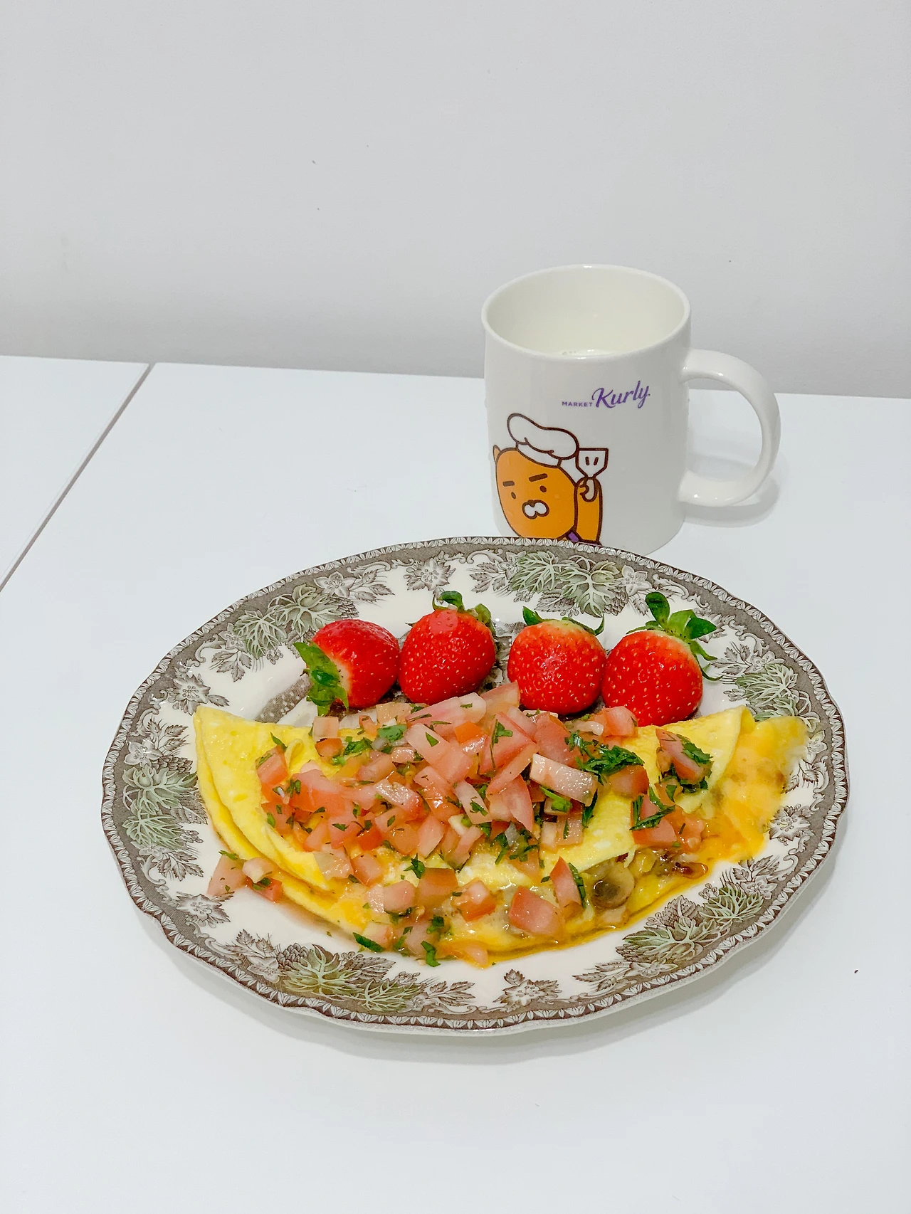 어제 과식한 탓인지 더부룩해서 아침을 거를까 했지만, 대장이 아침을 차려줬다. 토마토와 치즈를 곁들인 대장 표 오믈렛. 컬리에서 유명산지 딸기를 세일하길래 몇 팩 샀는데, 그것도 함께 곁들였다.