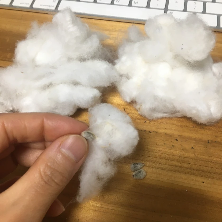 이 씨앗을 손톱으로 하나씩 떼어내기부터 시작한다. 쉽게 떨어지진 않는다. 그래서 예부터 솜을 빼내는 기계 ' 씨아'가 만들어져 이용되었다고 한다.