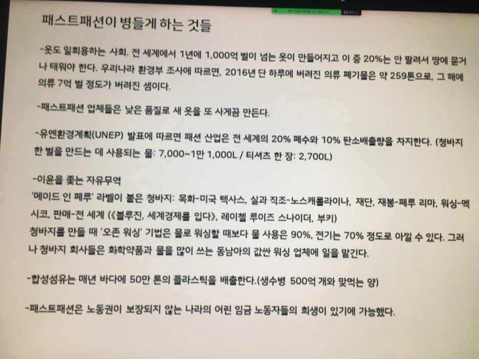 패스트패션 강의 들었던 부분은 언젠가 따로 글로 남겨보기로 한다.