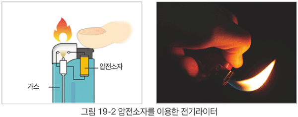이러한 압전 물질은 라이터에 이용됩니다. 우리가 라이터에 있는 스위치를 돌리거나 누르면, 압전 물질이 눌려서 전기적 에너지를 생성합니다. 이 에너지로 인해서 스파크가 발생하게 되는데요. 여기에 발화가 가능한 연료를 분출해주면 불꽃이 나오게 됩니다. 저도 사실 이번에 압전물질의 응용을 조사하면서 처음알았습니다. 너무 신기하더라구요(ㅎㅎㅎ)
