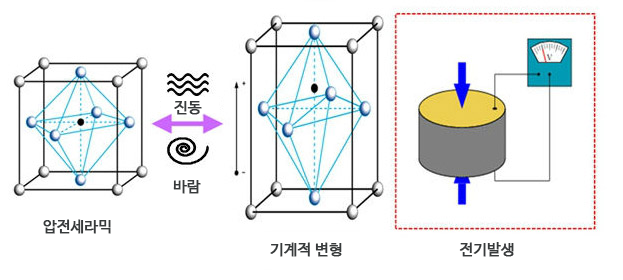 압전 물질은 기계적 변형을 이용해서 전기 에너지를 만들기 때문에, 신재생 에너지 측면에서도 다양하게 응용이 기대되고 있습니다. 이러한 분야를 에너지 하베스팅이라고 부릅니다. 그러나 안정적인 에너지원으로 자리잡기 위해선 해결해야할 문제가 남아있습니다. 어쨌든 물체에 힘을 가하기 때문에, 이 물체가 손상될 여지가 있고 사용하다보면 압전의 성질이 사라질 수 있는 수명의 한계를 떠안고 있습니다.