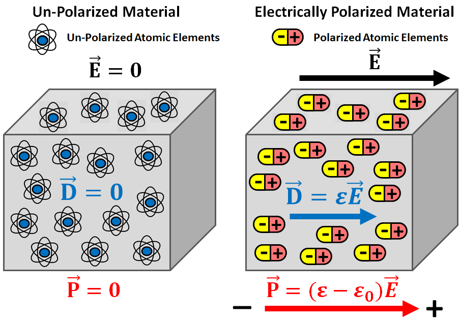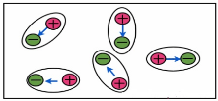 우리가 평상시에 보는 물질은 (+) 와 (-)전하가 균형을 이루고 있습니다. 바로 원자핵(+)와 전자(-)가 원자(중성)을 이루고 있기 때문입니다. 그러나 실제로 물질 내부로 들어가면 상황은 달라집니다. 바깥에서 보면 완전히 중성처럼 보이는 물질도, 확대해서 보면 어느정도 (+)와 (-)가 떨어져 있기 때문입니다. 따라서 물질 내부에는 수많은 전기 쌍극자가 존재하게 됩니다.