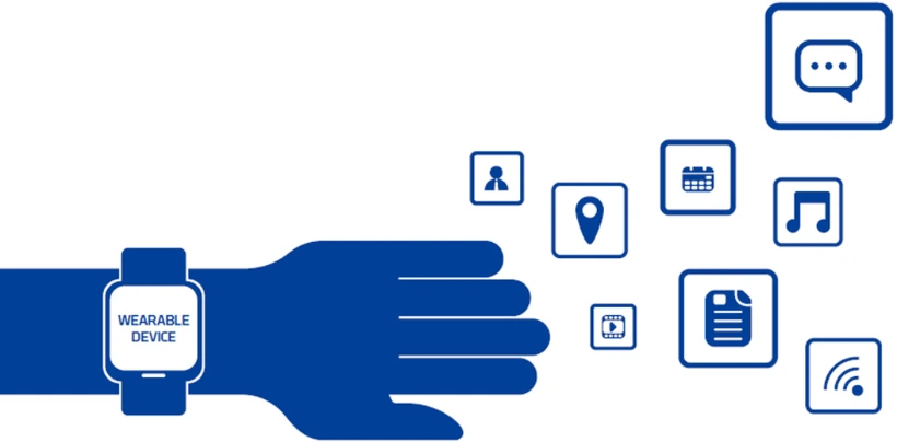 4차 산업혁명과 함께 부상한 사물인터넷(Internet of things)이라는 것은 우리가 일상에서 보는 모든 사물이 인터넷으로 연결된다는 개념입니다. 이것을 실현시킬 수 있는 후보로 웨어러블 디바이스가 각광받고 있습니다. 웨어러블 디바이스란, Wearable+Device의 조합으로, 입을 수 있는 전자기기를 의미합니다. 가장 유명하고 대표적인 것은 스마트워치죠? 다른 스마트 기기와 연동하여 기존의 시계가 가질 수 없던 다양한 기능을 사용할 수 있습니다. 문자를 확인하거나 체온 측정, 운동 보조 등의 기능이 현재 스마트 워치에서 지원되고 있습니다.