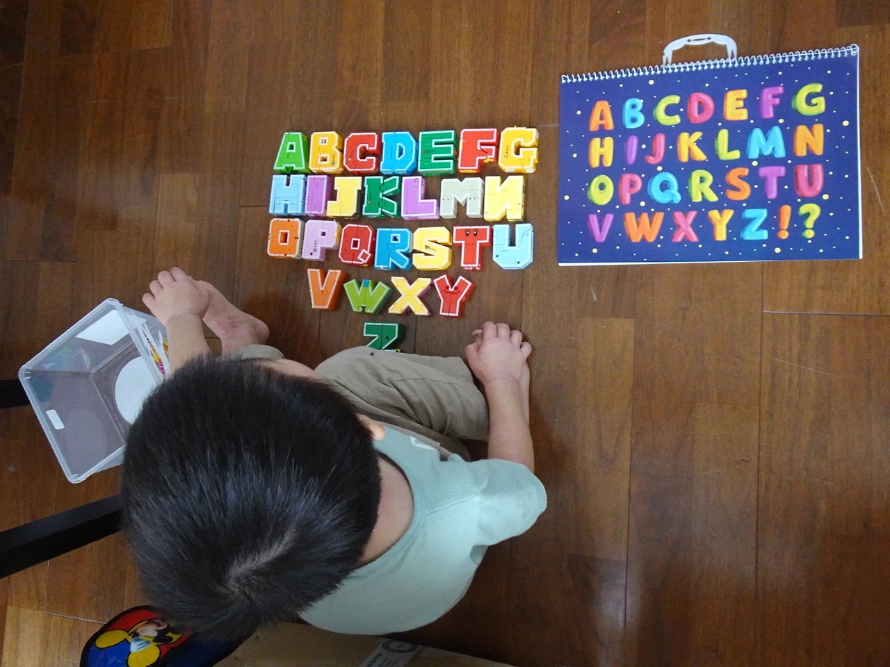 5. 영어단어 그림 브로마이드 펼쳐 아는것 읽어보고, 알파벳 변신블럭 순서대로 나열하기, 26자 모두 변신 시키기