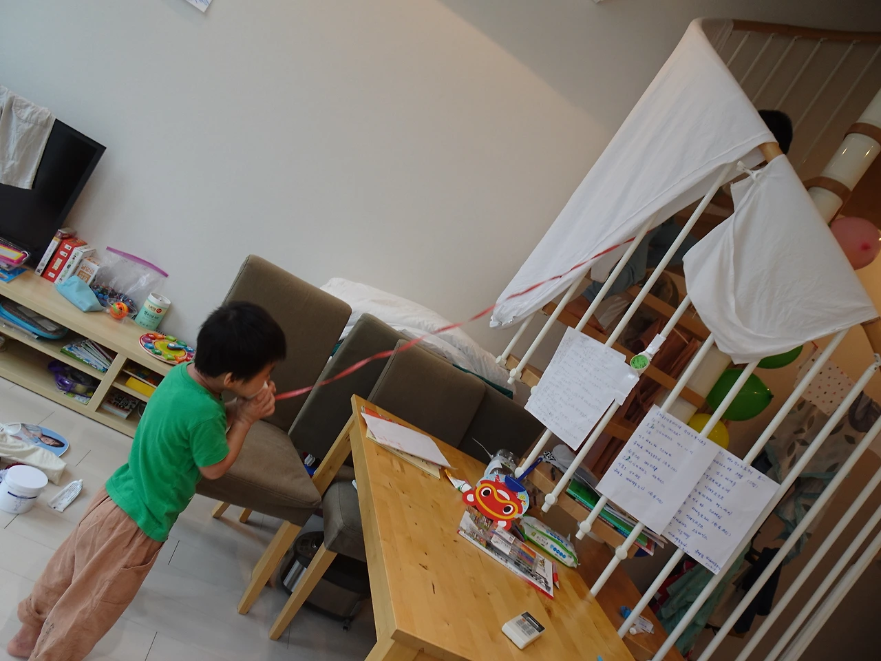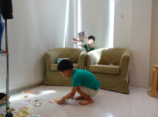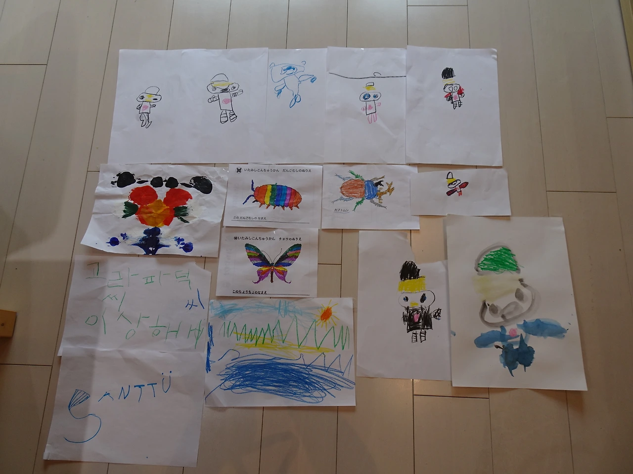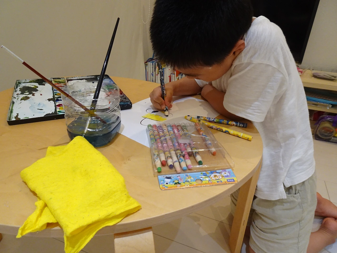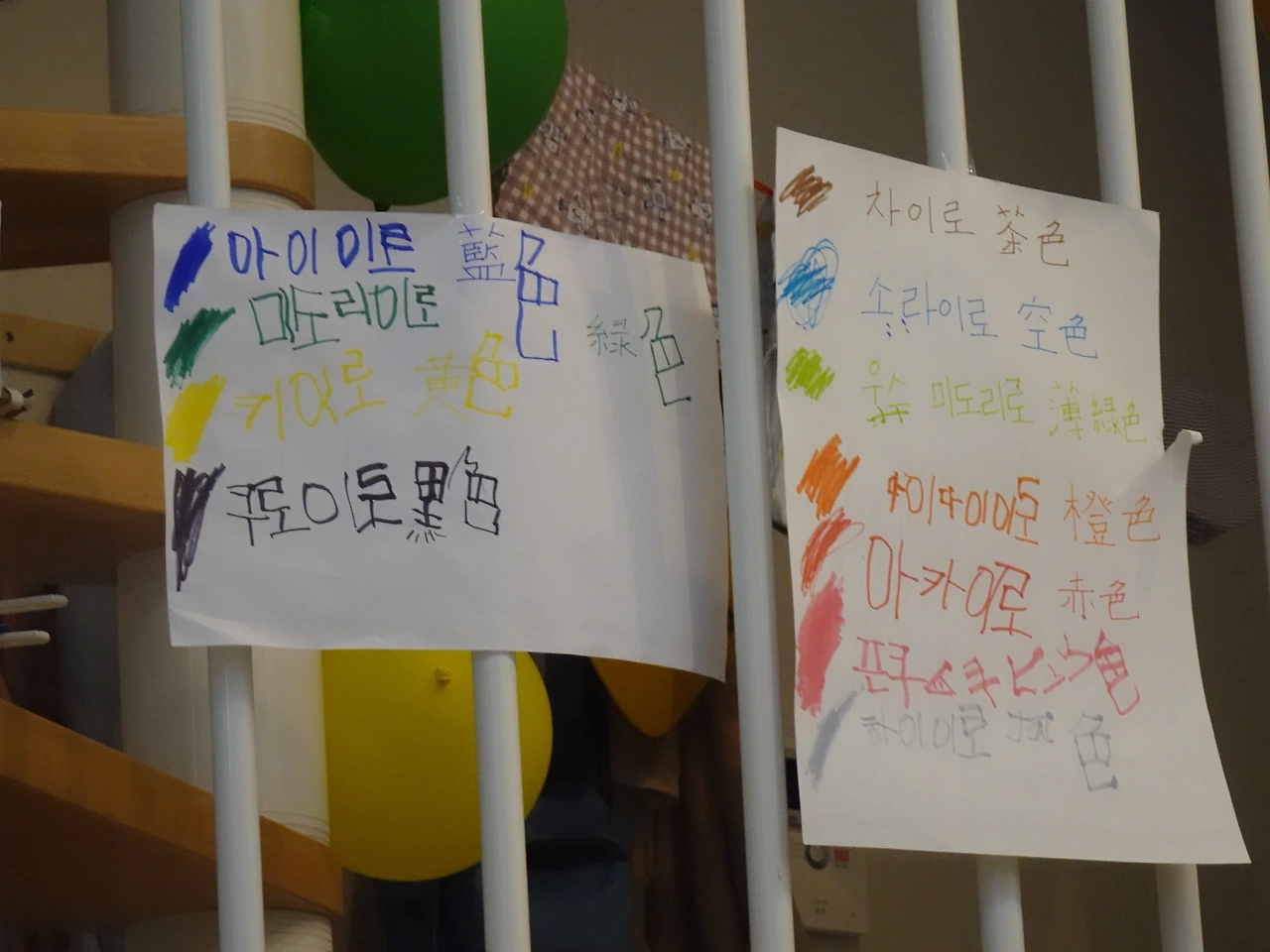 14. 그 외, 색깔을 말하는 일본 단어를 적어보기도 하고, 한국에서 미리 보냈던 토리 지식 그림책 전집을 읽고 부록 책 활동을 하거나, 광복절이 오면 태극기도 그려서 달아보고 등, 오히려 한국에서는 그냥 흘려보냈을 시간을 이것저것 하려고 시도를 많이 했다.